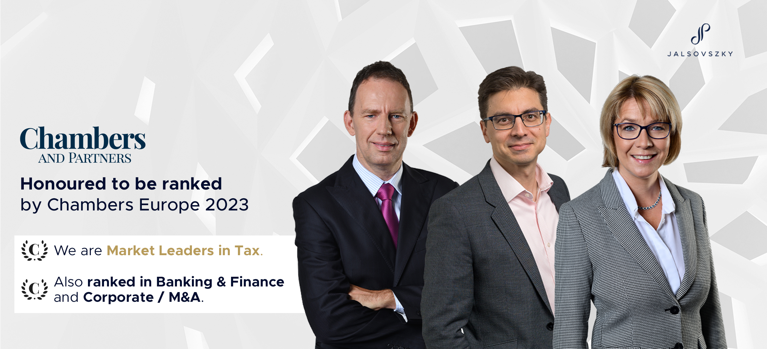 A Chambers Europe számos kritérium alapján értékeli az ügyvédi irodákat, többek között a szakmai munka minősége, az ügyfélkezelés, az üzleti gondolkodás és a folyamatos fejlődés mentén. Ezért is értékes, hogy az irodánk valamennyi partnerét – Jalsovszky Pált, Fehér Tamást és Bejó Ágnest – személy szerint is kiemelte a kiadvány.