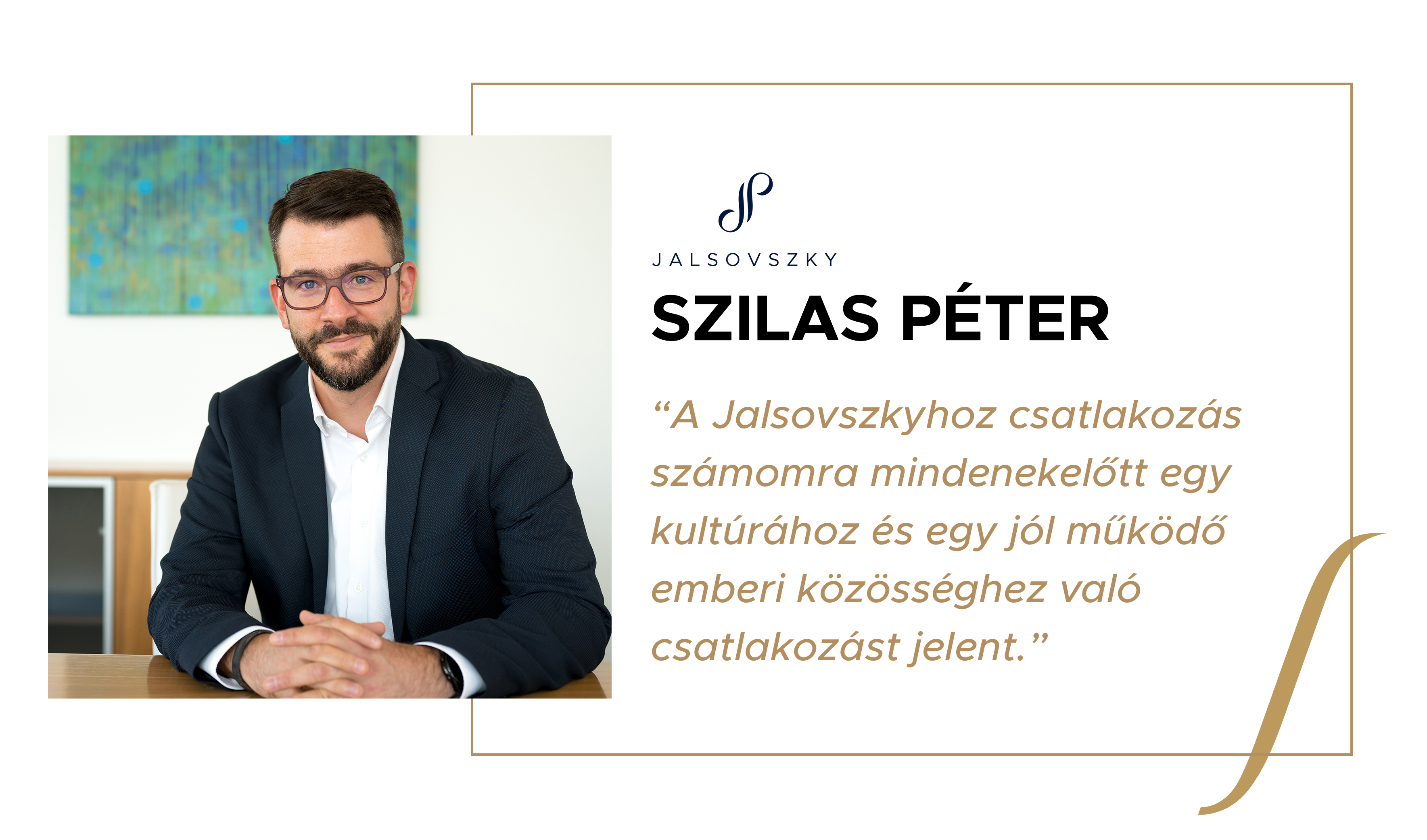 "A Jalsovszkyhoz csatlakozás számomra nemcsak egy ügyvédi irodához, hanem mindenekelőtt egy kultúrához és egy jól működő emberi közösséghez való csatlakozást jelent. Különösen izgalmasnak találom, hogy egy fejlődő és növekvő vitarendezési praxishoz csatlakozhatok, ami nem kevés szakmai és üzleti kihívást is tartogat a számomra” – fejtette ki Szilas Péter.